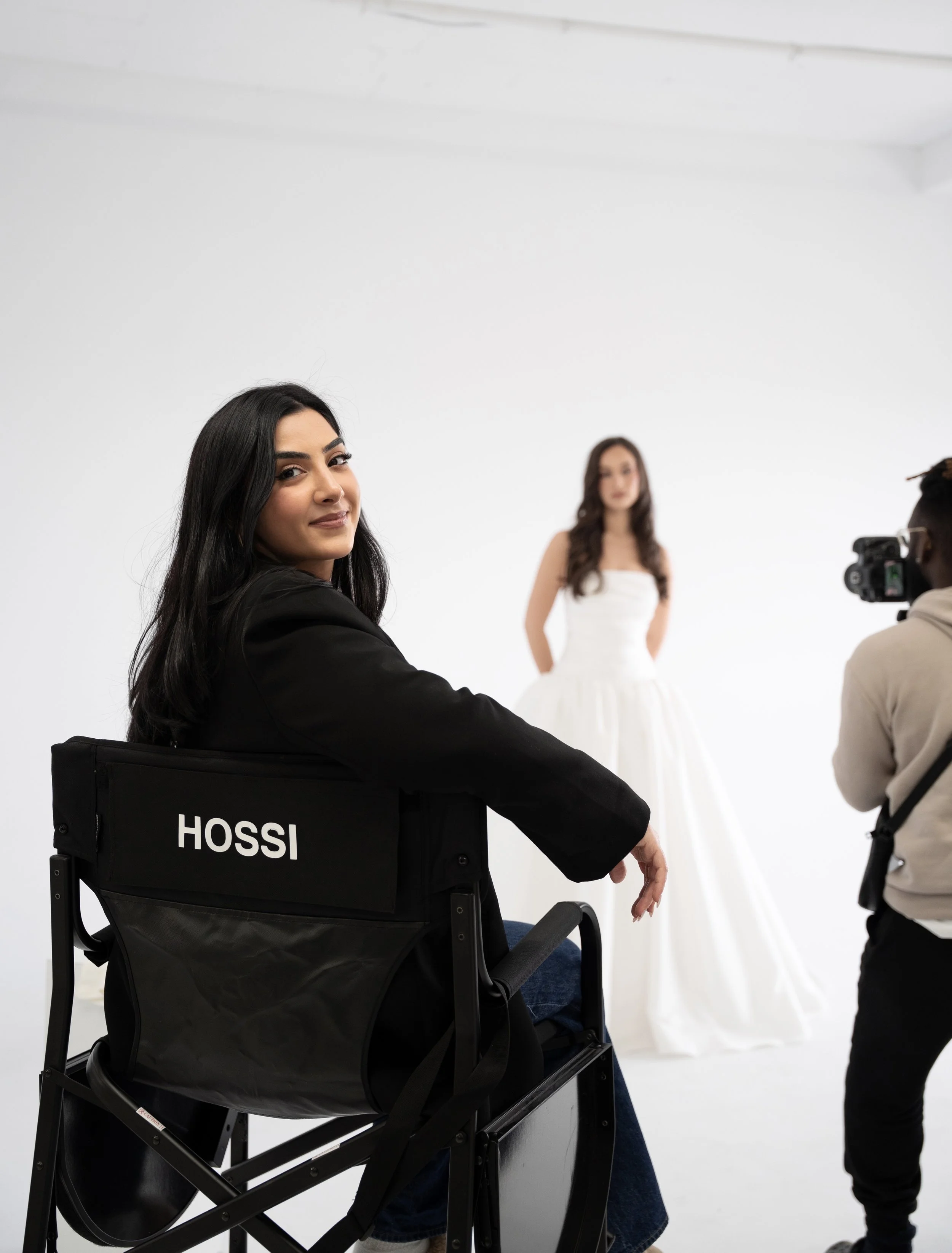 Whether in our Montreal studio or at your wedding venue, we bring the full Hossi bridal experience to you.